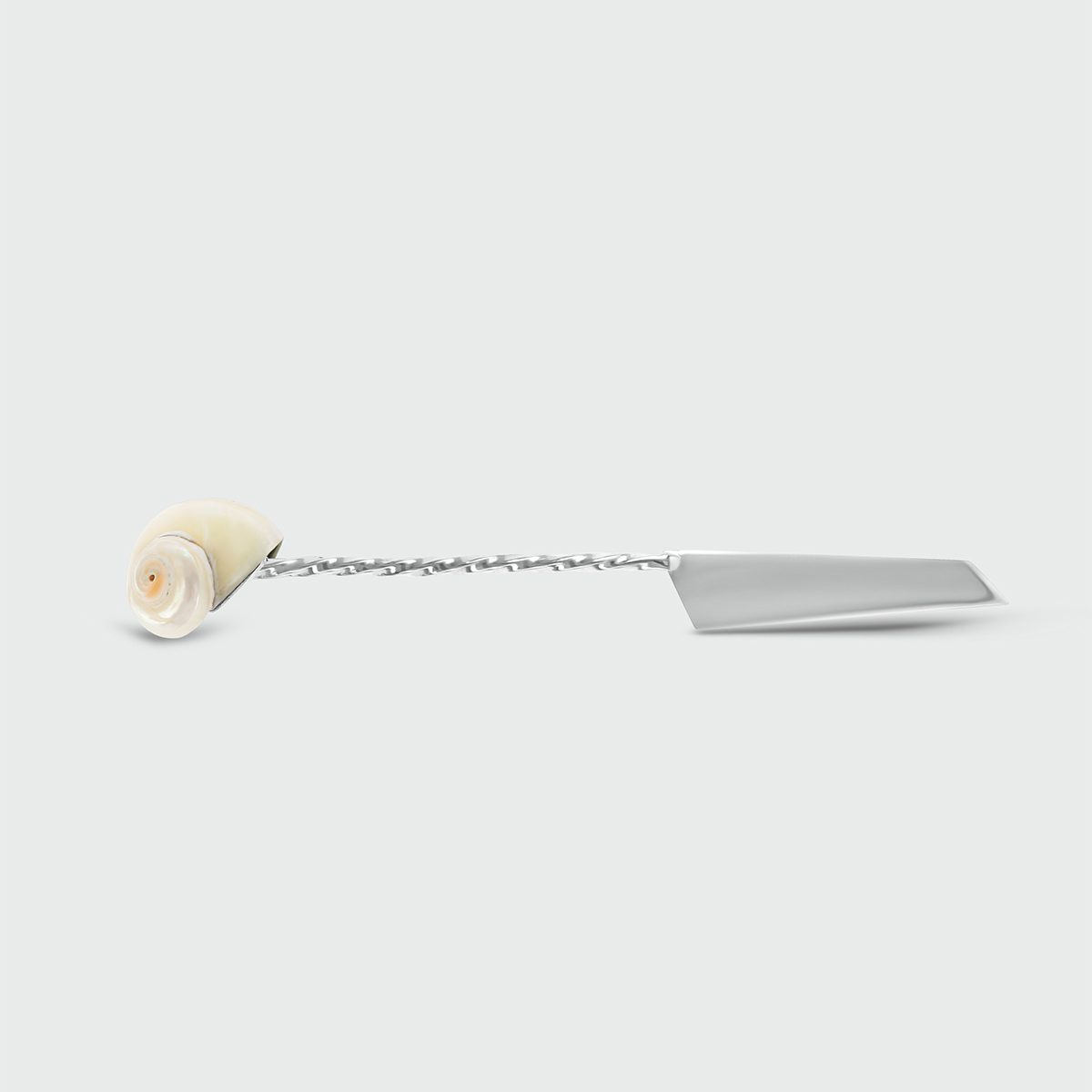 Butter/paste knife in 925 silver weighing approximately 20g, with cowrie shell application. Piece measuring 17 cm long.